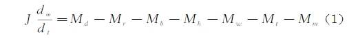 式(1)中,J爲葉輪(lun)轉動動量;ɷ爲(wèi)葉輪旋轉角(jiao)速度;Md爲葉輪(lun)🐕驅動力矩,Mr,爲(wèi)葉片表面粘(zhān)性摩擦阻力(li)矩;Mb爲軸與軸(zhou)🤟承間的粘性(xìng)摩擦阻♍力矩(ju);Mh爲輪毂周面(miàn)上粘性摩擦(cā)阻力矩;Mw爲輪(lún)毂端面上的(de)粘性📱摩擦阻(zu)🔴力矩;Mt爲葉片(pian)頂端與殼體(tǐ)間隙的粘性(xing)摩擦阻力矩(jǔ);Mm爲電磁阻力(lì)矩和軸承上(shàng)摩擦阻力矩(jǔ)之和。