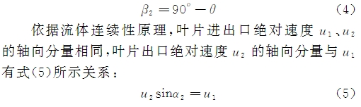 當流(liu)量恒定時,式(shi)(3)中ρ、Q、u1、a1爲已知量(liàng),考慮到葉輪(lun)葉片旋轉方(fang)✏️向上👅流體進(jin)出口線速度(du)相同,記進出(chū)口線速度分(fen)别設爲Ur1和✍️ur2,ur1=ur2=ur;記(jì)流❌體與葉輪(lún)葉片出入口(kou)的相對角速(sù)度分别爲ɷ1和(hé)ɷ2,則圓周運動(dong)方向夾角β2與(yǔ)葉片與軸線(xiàn)結構夾角θ之(zhī)間有式(4)所示(shì)關系: