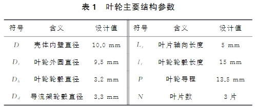 基于上(shang)述分析可見(jian),葉輪的運動(dong)特性主要受(shòu)其結構參數(shù)、流體粘性系(xi)數等影響。爲(wèi)分析小流量(liang)渦輪結構的(de)流場特性,設(she)計參數如表(biao)1所示葉輪系(xi)統,借助UG軟件(jian)建立其三維(wei)仿真模型;将(jiang)該三維模型(xíng)導入ANSYSWork-bench軟件中(zhōng)仿真。