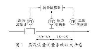 在以渦(wo)街流量(liang)計爲核(he)心組成(chéng)的蒸汽(qì)流量測(ce)量系統(tǒng)中,還需(xu)配置蒸(zhēng)汽密度(du)測量手(shou)段和流(liú)量演算(suàn)器,該系(xì)統的組(zǔ)成如圖(tu)1所示,這(zhe)幾個部(bù)分組成(cheng)大約引(yǐn)人0.3%的不(bu)确定度(du)。