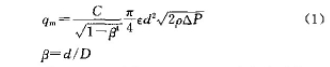 式中:qm爲質量流(liú)量,kg/s;C爲流出系數;D爲(wèi)管道内徑,m;e爲節流(liú)⁉️件正🌂端✂️取壓口平(píng)面上的氣體膨脹(zhàng)系數;d爲工作條件(jiàn)下節流件的開孔(kǒng)💘直徑,m;ρ爲節流件人(ren)口端流體密✌️度,kg/m³.