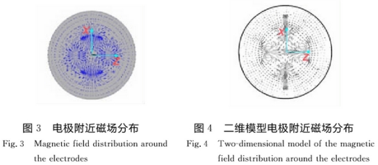 爲了保(bao)證模型(xing)的正确(què)率,對建(jian)立的四(si)電極外(wai)流式電(dian)磁流量(liàng)傳感器(qi)的三維(wei)有限元(yuán)模型,從(cong)2個方面(mian)進行了(le)校驗:首(shǒu)先,給有(yǒu)限元模(mo)型施加(jia)恒值電(dian)流激勵(lì),選用靜(jing)态求解(jiě)類型,将(jiang)模型最(zuì)外圈節(jie)點的Ax,Ay,Ax自(zi)由度均(jun1)設爲0,選(xuan)擇所有(you)單元後(hòu)進行求(qiu)解,然後(hou)在後處(chù)理器中(zhōng)讀入結(jié)果,畫出(chu)電極附(fù)近的磁(ci)場;分布(bù),如圖3所(suo)示,磁場(chang)分布符(fú)合金甯(ning)德等數(shù)值分析(xī)的結果(guo)'5],如圖4所(suo)示;其次(cì),在現有(yǒu)模型基(ji)礎上加(jia)密網格(gé)單元,所(suo)得感應(ying)電動勢(shì)大小前(qián)後誤差(cha)小于5%,從(cong)而保證(zhèng)有限元(yuán)計算結(jié)果不受(shou)網格質(zhì)量變化(huà)的影響(xiang)。綜上所(suǒ)述,該有(you)限元模(mó)型是準(zhun)确的,可(kě)用來進(jìn)行仿真(zhēn)研究。