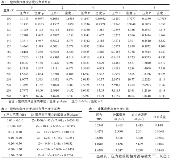 根(gen)據經驗(yan)公式,飽(bao)和水蒸(zhēng)汽密度(dù)與壓力(li)及密度(dù)的關系(xì)(4)如表2。
