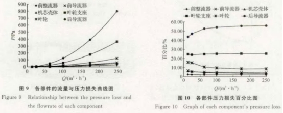 2)分析各(gè)部件對(dui)壓力損(sun)失的影(ying)響,其壓(ya)力損失(shi)與流量(liang)成📐二🐅次(ci)函數關(guān)系.後導(dao)流器相(xiàng)對于其(qi)他部件(jian)是🛀🏻壓力(li)損失的(de)主要因(yin)素,約占(zhàn)總壓力(li)損失的(de)一半,随(suí)🈲着流量(liang)的增加(jia)其壓力(lì)㊙️損失占(zhàn)總壓力(lì)損失的(de)比例上(shang)升了12.13%.葉(ye)輪支座(zuò)的🌈壓力(lì)損失🏒約(yue)占總壓(yā)力損失(shi)的1/4,其壓(ya)力損失(shi)⛹🏻♀️比例随(sui)流量的(de)增加基(jī)本不變(biàn).随着流(liu)量的增(zēng)加葉輪(lun)産生的(de)壓力損(sǔn)👣失比例(lì)降幅明(míng)❌顯.