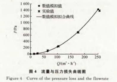 圖(tu)4爲流量(liang)與壓力(lì)損失之(zhi)間的關(guān)系曲線(xian),圖中實(shi)驗值是(shì)在工況(kuang)條件下(xia)使用音(yin)速噴嘴(zuǐ)法氣體(ti)流量标(biao)準裝置(zhi)測🔆得.