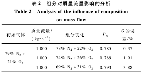 計算(suan)的工況條件爲(wei)20C、常壓,混合氣體(tǐ)的質量流量G=1000kg/h,可(kě)計算🐕出其組分(fen)設定不同對質(zhì)量流量的誤差(chà)影響,計算結果(guo)如表📞2所示。