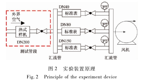實驗測試所(suǒ)用裝置是在天(tiān)津大學流量實(shí)驗室的氣體流(liú)📐量實驗裝置。實(shi)驗裝置采用微(wei)負壓法,通過調(diao)節風機的頻率(lǜ)來調節氣體流(liú)量。标準表由多(duō)路并聯的渦輪(lun)流👈量計組成,精(jīng)度等級爲1級,口(kou)徑分别❌爲40mm、80mm、150mm。實驗(yan)裝🐇置原理如圖(tu)2所示。