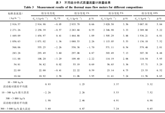 表3中(zhōng)Gg表示各組分熱(re)式流量計測量(liang)的質量流量,δ0表(biao)示未改變組分(fèn)時測量的質量(liang)流量相對誤差(cha),δ表示改變組分(fen)後測量的質量(liang)🌏流量相對誤差(chà)。