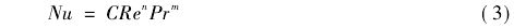式中:參數(shù)C與n在本次研究(jiu)中的取值由具(jù)體實驗數據拟(ni)🧑🏾🤝🧑🏼合得👌出,參數m根(gen)據文獻[6]的經驗(yan)值取1/3[6]Re稱爲雷諾(nuò)數,Re定義爲: