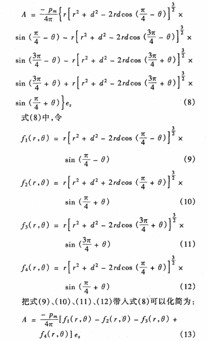 磁偶極(ji)矩Pm1在空間任(ren)意位置産生(shēng)的矢量磁位(wei)[4]A爲:
