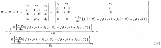 由式(shì)(13)可知:矢量磁(ci)位A沿柱坐标(biao)系的Z方向,是(shì)變量r,θ的函數(shù)。磁感應強度(dù)B由式(14)求得。