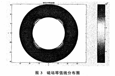 利(li)用MATLAB數值分析(xi)方法對式(15)進(jìn)行編程求解(jiě),得到了圖👄2磁(cí)場矢量分布(bu)圖和圖3磁場(chang)等值線分布(bu)圖。圖2中箭頭(tóu)的指向代表(biǎo)🌈了磁感應強(qiang)度即磁場的(de)方向,它是由(yóu)式(15)中⚽沿e,方向(xiàng)(半徑方👈向)和(hé)沿eo方向(垂直(zhí)于半徑方㊙️向(xiàng))的礅感應強(qiang)度共同作用(yong)的結.果。由圖(tú)❄️2可以直觀看(kàn)出在外流式(shì)電磁流量計(jì)和油管構成(cheng)的環形空間(jiān)中磁場呈規(gui)律性的對稱(cheng)分布。圖3中:色(se)标顔🔞色從紅(hong)色變爲藍色(se)表🥰示磁場☔強(qiáng)度由強逐漸(jiàn)變弱。由圖3可(ke)以直觀看出(chū)在外🐆流式電(dian)磁流量計和(he)油管構成的(de)環形空🍉間中(zhong)磁場呈規律(lǜ)性的對稱分(fèn)布;在四個磁(ci)極附近的磁(cí)場🛀🏻強度的值(zhi)很大,沿着徑(jìng)向迅速衰減(jiǎn)。.由圖2和圖3可(ke)以知道:在環(huan)形空間中,磁(cí)場呈規律性(xìng)的對稱分布(bù),四個磁極附(fu)近磁場強度(dù)的值相對較(jiao)大,其它位置(zhì)磁場強度的(de)值相對較弱(ruò)。