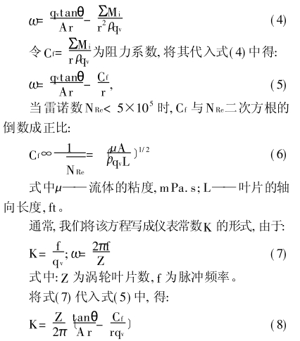 由式(5)和式(shi)(6)可見:當流體(ti)的粘度增大(da)時,渦輪的轉(zhuǎn)動角速度變(biàn)🌈小;當流體密(mi)度變大時,渦(wo)輪的轉動角(jiǎo)速度也随之(zhī)增大。在流體(tǐ)速度較小(相(xiang)當于層流狀(zhuang)态)時,渦輪的(de)頻率🌈響應非(fēi)線性,且受流(liú)體性質變化(hua)影響較大;當(dāng)流體速度較(jiào)高(相當于湍(tuan)流狀态)時,式(shì)變小,渦輪響(xiang)應近似線性(xìng),儀器常數K基(ji)本上不受流(liu)體粘度變化(hua)影響。