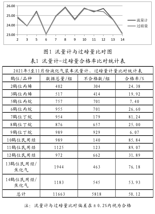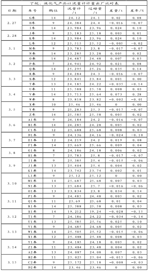 摘要:煉油廠的液(yè)化石油氣主要組(zu)成部分爲丙烷🔅、丙(bǐng)烯、丁烷、延遲焦化(hua)液化石油氣等,由(yóu)于其飽和蒸汽壓(yā)🔴較高⛷️,容易導緻氣(qì)液☔兩相共存,因此(ci),煉油廠的液化石(shi)油氣産品一直是(shì)通過🔴汽運過🍉磅的(de)形式進行出廠計(jì)量。随着時代的發(fā)展,客戶對便捷、速(sù)度的要求,流量計(ji) 計量逐漸成爲迫(pò)切的需求。本文針(zhēn)對液化氣出廠從(cóng)過磅計量到流量(liang)計計量的轉變過(guo)程中遇到的問題(ti)🌈進行探索和分析(xī),爲實際應用提供(gòng)理論和技術方面(mian)的指導。 前言 科氏(shì)質量流量計作爲(wei)一種可以直接測(ce)量流體質量流量(liàng)的精度高儀表,具(ju)有無可動部件和(he)密封件、測量精度(du)受介質溫✍️度、壓力(lì)及密度參數影響(xiǎng)小的特點平,同時(shí)由于流量檢測中(zhong)常用的💜流體物性(xìng)參數主要有密度(dù)、粘度、壓縮系數、比(bǐ)熱比和氣體絕熱(re)指數,因此科氏質(zhi)量流量💋計不僅應(ying)用于石油行業🈲,例(lì)如利用科❤️氏質量(liàng)流量計和❤️低含水(shui)分析儀計量🔴外輸(shū)原油的純油量中(zhong);在轉油站使用質(zhi)量流量計,用于各(gè)個計量站原油的(de)外輸計量和含✊水(shuǐ)分析。通過質量流(liú)量計對原油的流(liu)量、密度進行測量(liang),然後💃🏻用密度法算(suan)出含❗水率,進而得(de)出純油量🎯[3];同樣也(yě)廣💋泛應用于化👣工(gong)生産中,比如用于(yú)測量工藝管道中(zhōng)流經的各種單獨(dú)介質的💚流體、各種(zhǒng)漿液、非牛頓流♊體(ti)、有足夠密度的中(zhōng)高壓氣體、高✉️黏度(dù)👌流體、含有微量氣(qi)體的液體、懸浮液(yè)等,能夠充分滿足(zú)石油化🍉工生産裝(zhuāng)置對質量流量的(de)計量要求。因此科(kē)氏質量流量計較(jiao)其他流量計具有(you)明顯的優勢❌,它不(bú)僅是提高産品質(zhì)💋量的保障,而且是(shì)企業提高經濟效(xiào)益的重要手段5I,逐(zhu)步爲客戶所接受(shou)。但由于石油液化(huà)氣爲非均勻混合(he)液體(例如含水液(ye)化氣),易造成流🔴量(liàng)計測量管内部介(jiè)🈲質質量分布不均(jun),造成測量誤差。因(yīn)此,石油🥵液化氣利(lì)用科氏質量流量(liang)計出廠一👄直是一(yi)個難點。 1.項目背景(jing):過磅出廠與裝車(chē)流量計的數據比(bi)對 廠内液化氣出(chū)廠一直采用汽車(che)衡出廠的計量方(fāng)式。2025年12月♋1日🈚至12月13日(ri),将流量計裝車數(shù)據與過磅量進行(háng)數據比對,部分比(bi)對結果如圖1。 在此(ci)期間共采集液化(hua)氣裝車台2~14鶴位流(liú)量計一汽車衡計(jì)量比對數據11663組,結(jié)果發現其中不合(hé)格數據有5818組,數據(jù)㊙️合格率爲50.12%,如表1所(suo)示。 從圖中的數據(jù)分析,流量計與過(guo)磅量的差距較大(dà),流量計本身的計(ji)量還達不到貿易(yi)交接的要求。經過(guò)現場勘查發現,科(ke)氏質量流量計本(běn)身檢定完畢後,直(zhi)接回裝,并未按照(zhao)現場的實際工況(kuang)進行溫壓🤩補償,與(yǔ)此同時,部分鶴位(wèi)流量計的安裝有(you)應力的影響。結合(he)比對數據及現場(chang)分析,接下來對每(měi)個鶴位的流量計(ji)進行了溫壓補償(cháng)、消除應力,同時也(yě)對🚶♀️流量計部🚩分參(can)數進行了📧相應的(de)調整。調整後,流量(liang)計與過磅量的部(bu)分比對數據,見圖(tu)(2)。 調整後,流量計與(yǔ)過磅量差量減小(xiǎo),再次收集流量計(ji)與過磅量的比對(duì)數據543組,其中不合(hé)格數據55組,數據合(hé)格率89.87%,相比調整前(qian)數據合格率提升(shēng)39.75%,如表2所示。 2.影響數(shu)據合格率的因素(su) 從上述兩次的比(bǐ)對統計表可以看(kan)出,雖然合格率有(yǒu)所提升,但還沒有(you)達到使用流量計(jì)進行貿易交接的(de)條件。經過一個多(duo)月現場裝車調研(yán),發現影響🧡數據比(bǐ)對的合⛷️格率不僅(jǐn)與儀表安裝應力(li)、溫壓補償有關,也(yě)㊙️受現場裝車操作(zuo)、工🚩藝操作、汽車衡(héng)本身精度等多方(fāng)♈面影響。 (1)現場裝車(chē)操作的影響 液化(hua)氣類産品裝車是(shi)一個典型的采用(yòng)常壓開放式鶴位(wei)裝車,槽車開至所(suǒ)分配的鶴位,車輛(liàng)停穩熄火後,由裝(zhuāng)車操作人員将鶴(he)管放置到槽車底(di)部,同時将防靜電(diàn)接地夾夾㊙️在槽車(chē)上。完成準備工作(zuo)後,操作人員在鶴(hè)位批♌控器上輸入(ru)裝車密.碼,打開氣(qì)動二段式裝車球(qiu)閥,開始裝車。開始(shi)時裝車閥打開一(yi)半開度,以低流速(sù)裝車,5s以後,裝車閥(fá)全部打開。然後根(gēn)據現場實際工況(kuang),随時調節流量,做(zuo)好錯車準備。達到(dào)預裝量後,人工或(huò)者自動關閉批🐕控(kong)器,完成裝車。從上(shang)述裝車流程可以(yǐ)看出,實際裝車時(shí),由于系統管線壓(yā)力與槽車内.壓力(li)相差較大🔞,很容易(yì)引🧑🏾🤝🧑🏼起液化氣汽化(huà),而質量流量計在(zai)氣液兩相時無法(fa)🌈正常🔱計量,易造成(chéng)數據偏差,而且不(bu)同的裝車人員有(you)不同的操作習慣(guàn),這些因素都會影(ying)響流量計數據的(de)正确率,因此,規範(fàn)裝車操作是面臨(lín)的第一個問題。 (2)工(gong)藝操作對數據的(de)影響 一旦使用流(liu)量計進行結算,也(ye)将對工藝操作提(ti)出新的更嚴格的(de)要求,如泵的操