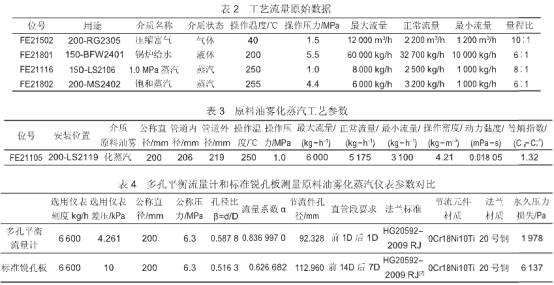 依據表3中的原(yuan)料油霧化蒸汽(qì)工藝參數,通過(guò)孔闆計☂️算軟件(jiàn)計算出标準銳(rui)孔闆儀表數據(ju);通過多孔平衡(héng)流量計軟件計(ji)算出多孔平衡(heng)流量計的儀表(biǎo)數據,兩者數據(ju)對比見表4.