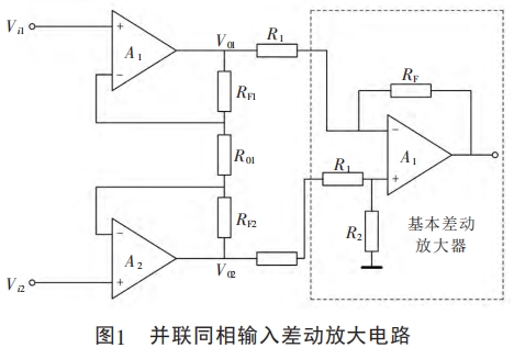式(shì)中:Auf差動電路放大(dà)倍數;RF1、RF2一前置放大(da)級OP放大器A1、A2的負反(fan)饋電阻;R01一前級輸(shu)出電阻。