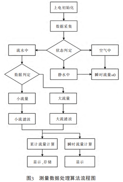 根(gen)據狀态的判斷結(jié)果,将靜水和空氣(qi)中的數據置0,并♉傳(chuán)輸至液晶屏顯示(shì)。若是流水狀态,則(ze)進--步進行流量👈大(dà)小的判定,判定的(de)依據爲采樣數據(jù)的大小。對于小流(liu)量數據進行小流(liú)濾👉波對于大流數(shù)據進行大流濾波(bō)。進行不同流量濾(lü)波的原因是針對(duì)管路中的流動噪(zao)聲進行處👌理。小流(liú)量時對采樣數據(jù)進行算術平均濾(lǜ)波,而大流量🚩時要(yao)進行異常數據🐆剔(tī)除及加🍉權平均濾(lǜ)波。