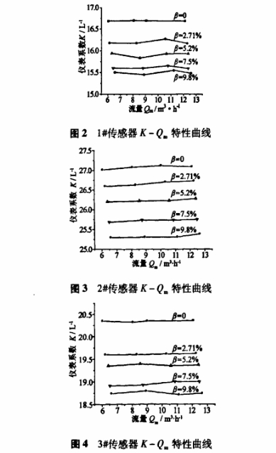 由圖5和(hé)圖6曲線可得出(chu)初步結論:2#傳感(gan)器K,值小于1#與3#傳(chuán)感⛷️器💜;由表3數據(ju)可得到初步結(jié)論:在含氣率相(xiàng)同㊙️時,随着氣液(yè)兩相流量的降(jiàng)低,傳感器重複(fu)性誤差增大;在(zai)相同流體條件(jiàn)下,2#傳感❗器測量(liang)重複性誤差優(yōu)于1#與3#傳感器的(de)重複性誤差。