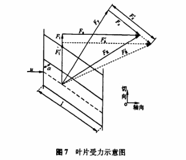 葉輪受力(li)分析見圖7,u爲來(lai)流速度,Ɩ爲葉片(piàn)長度,ω爲葉輪旋(xuán)轉角速度。Fa、F1分别(bié)爲流體對葉輪(lun)的軸向力和圓(yuan)周力,FR爲二者的(de)合力;Fg、Fy分别爲FR在(zài)與葉片平行方(fang)向上🤞的分量和(he)與葉片垂直方(fang)向上的分量,稱(chēng)Fs爲葉輪阻力,Fy爲(wei)葉輪升力。