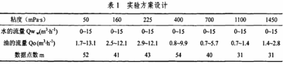 首先固(gù)定油相粘度(du),用電磁流量(liàng)計測量入口(kou)處水相流量(liang)Qw,用腰輪流量(liàng)計測量入口(kou)處油相流量(liàng)QO,分别得到入(rù)口處油相、水(shui)相的體積相(xiang)含率βo和βw.即: