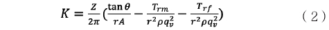 式(2)中:Z一渦輪葉片(piàn)數;θ一流體流動方(fang)向與葉片的夾角(jiao)☁️;r一葉🐉片的平均半(bàn)徑;A一流通截面積(jī);ρ一流體密度;Trm一機(ji)械摩擦阻力矩;Trf一(yi)流體對渦輪的阻(zu)力矩。