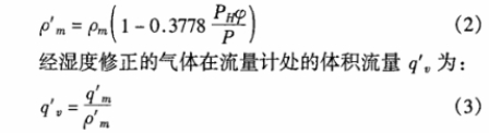 經濕度修(xiū)正的氣體在流量(liàng)計處得密度ρ'm爲: