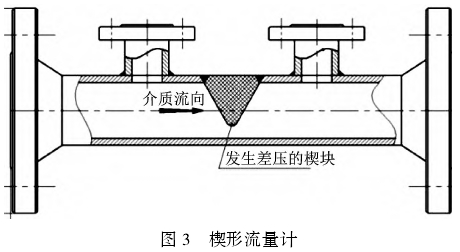 (如圖3)的工作(zuo)原理是當充(chōng)滿管道的流(liú)體流經楔形(xing)孔闆的時候(hòu),測量楔形孔(kong)闆上遊側和(hé)下遊側流體(ti)的差壓,将差(cha)壓信号轉變(bian)成4~20mA的電流信(xìn)号,經過單片(pian)機處理後輸(shū)出流量值。楔(xie)形流量計與(yu)前面四種流(liú)量計相比,其(qí)精度最高(可(ke)達0.2級),測量範(fan)圍最大(可達(da)1:33)[6]。除此之外,在(zài)低流速(0.01m/s)的情(qíng)況下,依然可(kě)以正常工作(zuò)。缺點是結構(gòu)複雜,制造成(cheng)本高。工作壓(ya)力一般≤10MPa,工作(zuo)溫度一般≤400C。目(mu)前主要用于(yú)高壓及以下(xia)鍋爐的主給(gěi)水和減溫水(shui)管道上的流(liu)量測量。