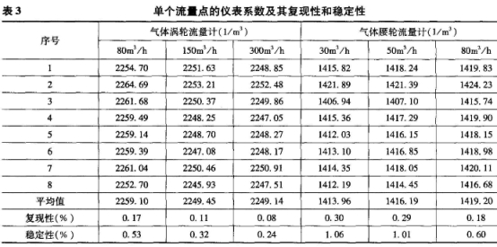 針對每一個(gè)流量點儀表(biǎo)系數的測量(liàng)數據見表3。