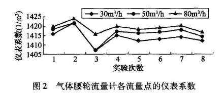圖(tu)2中,氣體腰輪(lun)流量計三個(ge)流量點的儀(yi)表系數整🛀🏻體(tǐ)的變🌈化趨勢(shi)相同,第二次(ci)試驗的儀表(biao)系數整體增(zēng)大⛹🏻♀️,第三次試(shi)驗的儀表系(xi)數卻整體下(xia)降,而之前和(hé)之後的儀表(biao)系數基🚩本保(bǎo)持--緻。三個流(liu)量點的儀表(biǎo)系數平均值(zhí)分别❓爲1413.96m-3、1416.19m-3和1419.20m-3,差(chà)值基本相同(tong),說明氣體腰(yao)輪流量計的(de)儀表系數與(yu)流量點的🙇♀️線(xian)性關系較好(hǎo)。