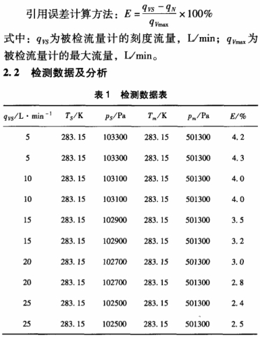 在浮子流量計最(zuì)大流量點檢測6次(ci),計算檢測值的♈标(biao)準差,爲其重複性(xìng)。設Ts,Tm均爲283.15K,被檢表刻(ke)度狀态爲0.4MPa,流量計(jì)⚽滿量程流量爲25L/min。