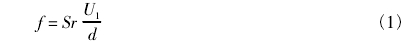 式中:ƒ爲旋渦(wo)脫落頻率,Hz;Sr爲(wèi)斯特勞哈爾(ěr)數;U1爲發生體(tǐ)兩側流體🔅平(píng)均流速,m/s;d爲發(fa)生體迎流面(miàn)的寬度,m。