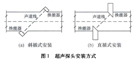 超聲流量計由(you)于其無壓損、易安(an)裝、精度高等優點(diǎn),近年來得🌈到了廣(guang)泛應用。超聲流量(liàng)計是通過測量超(chāo)聲波在流體中順(shun)流和逆流的時間(jiān)差,計算聲道上的(de)平均流速,再對不(bú)同聲道高度的🐆平(píng)均流速進行積分(fen),從而求得流量"。常(chang)見的探頭安裝方(fang)式如圖🔴1所示,在探(tan)頭附近容易産生(shēng)旋渦,影響了時差(chà)的測量。