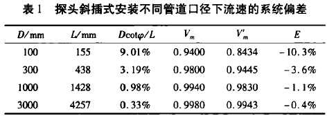 通過對圖4分析(xi)可知,在這種安裝(zhuāng)方式下,在管道中(zhōng)心位置附近,各方(fang)向的流速是相近(jìn)的,流速差值小🐇于(yu)1%,可以認爲管㊙️道中(zhōng)心附近爲非影響(xiang)速度區;在管道中(zhong)心兩側,不同區域(yù)的流速變化情🈲況(kuang)不同,可以認爲受(shòu)影響速度區的範(fàn)圍b=3.535D。通過耦合仿💘真(zhēn)計算,将非影響區(qu)域的流速平均值(zhí)V=2.458m/s和平均聲壓計算(suan)流速🏃值V"m=1.928m/s帶人式(7)中(zhōng)🏒,求得上下遊影響(xiang)區域内的平均流(liú)速(V'1+V"2)/2爲1.928m/s。再利用式(7)進(jìn)行加權計💋算,可以(yǐ)推算出更長聲道(dao)時的探頭擾流影(ying)響,設定非影響區(qū)域的流速爲1,求👉得(de)不同管✨道口徑下(xià),流速的系統偏差(cha)E如表1所示,其中聲(sheng)道角度φ=45°,探頭直徑(jing)D=14mm。