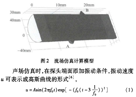 式中,P爲聲壓(ya);P0爲流壓力;po爲流密(mi)度;c0爲聲速;V0爲流速(sù)。本文中聲🔅速C0設⁉️置(zhì)爲1481m/s。分别在探頭A探(tan)頭B端添加式(1)振動(dòng)速度u,爲減👈少計算(suan)量📞,設置了較低的(de)振動頻率(0.2MHz)。