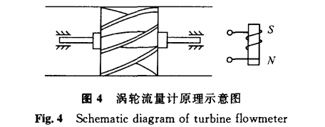 是(shi)基于動量矩(ju)守恒原理制(zhì)造的速度式(shi)流量儀表,即(ji)利用置于流(liú)體中葉輪的(de)旋轉角速度(dù)與流體流速(su)成比例的關(guān)系,通過測量(liang)葉輪的轉速(sù)來反映通過(guò)管道的體積(ji)流量,是目前(qián)流量儀表中(zhōng)比較成熟的(de)高精度儀表(biao),工作原理如(rú)4所示。
