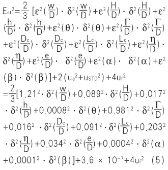 us和Ustd是需确(què)定的值,但在(zai)校準設備充(chōng)分長直管可(ke)忽略ur情況下(xia),測得标準1型(xíng)St數的标準偏(piān)差爲0.0003.即可得(de)到:uz2+usro2=0.0003(3)