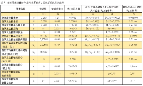 《标準》解說部(bù)分列舉了W.T.Gw三(san)個結構參數(shù)求取敏感系(xì)數的實驗數(shu)據如表3,從旋(xuán)渦發生體寬(kuan)度W對St數的敏(mǐn)感性圖中可(kě)求出敏感系(xì)數1.208.