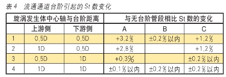 測(ce)量通道台階(jiē)影響:“解說“闡(chan)明儀表測量(liàng)内徑和前🔞後(hòu)管♈路内👄徑🆚差(chà)異形成台階(jie)影響的實驗(yàn)數據圖3幀📐,文(wén)件認爲試驗(yan)♊尚不夠充分(fen),因此未納入(rù)《标準》正文。所(suo)例舉儀表内(nei)徑151mm,測量🐅管長(zhang)151mm,旋渦發生😄體(ti)置于中點,連(lián)接到3種内徑(jing):A=146.5mm、B=1555mm、C=159.2mm的前後直管(guǎn),按台階與旋(xuan)渦發生體軸(zhou)間距作4組配(pei)置,即(1)上遊側(ce)0.5D,下遊測0.5D;(2)上遊(yóu)側1D,下遊側0.5D;(3).上(shàng)遊側0.5D,下遊側(cè)1D;(4).上遊側1D,下遊(yóu)側1D。所測得的(de)St數與無台階(jie)管段相比,變(biàn)化如表4。從中(zhong)可看出:前後(hou)直管内徑小(xiǎo)🐕于儀表測量(liang)管内🈲徑比大(dà)于測量管♊内(nèi)徑影響大:後(hou)台階的影響(xiang)大于前台階(jie)的影響。認爲(wèi)渦街流量計(jì)後直管内徑(jing)與儀表内徑(jìng)差的影響比(bǐ)前直管大✏️這(zhe)一現象,與其(qí)他流量儀表(biao)(如節流差壓(ya)流量計、渦👄輪(lún)流☎️量計、電磁(cí)流量計)前直(zhí)管影響大的(de)常例相反.值(zhi)得關注。