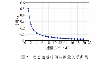 儀器傳感器(qi)絕緣筒内徑設(she)計爲16mm,絕緣棒.外(wài)徑設計爲5mm,根🚩據(ju)經驗,上下遊電(diàn)極距L選擇爲絕(jué)緣筒内徑d的0.5到(dao)2倍爲宜,這裏選(xuǎn)取L的長度爲10mm。傳(chuán)感器截面積設(shè)爲S,流速v與渡越(yue)時間t成反比關(guan)系🌂,通過流量Qv與(yǔ)流速v的🐆關系Qv=86400vS,可(kě)得到圖2所示的(de)曲線圖。由圖2可(kě)以看出,當流量(liàng)小于10m3/d,傳感器的(de)響應比🧑🏽🤝🧑🏻較理想(xiǎng)。