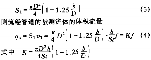 式中,S爲(wèi)管道内截面積(ji),m2;v爲流經管道内(nèi)截面的平均流(liu)速,m/s;S1爲㊙️流體流經(jīng)有漸縮測量導(dǎo)管的漩渦發生(shēng)體處的流通截(jie)面🛀積,m2則