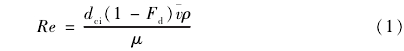 式(1)中:dci爲(wèi)流量計的外(wài)半徑,m;`ʋ爲流體(tǐ)平均速度,m/s;ρ爲(wèi)流體密度,kg/m3;μ爲(wèi)流體的黏度(du),mPa.s;F.爲流量計外(wài)半徑與油管(guan)内半徑的比(bi)。
