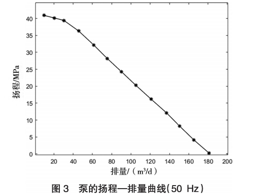 泵性能(neng)曲線,即是測出(chu)不同排量下的(de)揚程、電流、軸功(gong)率💋等數據,用以(yǐ)判定電泵是否(fǒu)符合GB/T16750--2015《潛油電泵(beng)機組》的要求♌。由(you)于泵性能曲線(xiàn)是在地面完成(chéng)的,測出🌐的試驗(yan)數據實際就是(shì)♈泵出口在不同(tóng)排量下的壓👌力(lì)數據。如果在油(yóu)井井下端測出(chū)泵出口壓力、吸(xī)人口壓力,就可(kě)以近似得出在(zai)一定壓力下的(de)排量數據,實驗(yan)井50Hz工✉️頻的排量(liang)壓力曲線如圖(tu)3所示。