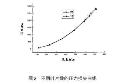 流(liu)量計常用葉(yè)輪葉片數爲(wei)13,葉片形狀爲(wèi)矩形。爲提高(gao)流量計的靈(líng)敏度作者對(duì)葉輪作了改(gǎi)造,将葉片數(shù)增爲20,葉片形(xing)狀設計成葉(ye)頂寬葉根窄(zhǎi)的倒梯形形(xíng)狀梯🏃形尺寸(cùn)以保證🛀相同(tong)重疊度爲原(yuan)則。圖5爲分别(bié)采用13和20葉片(piàn)數的☂️葉輪後(hou)流量計壓損(sǔn)曲線圖。可看(kan)到兩條曲線(xian)幾乎重合。說(shuo)明在允許範(fàn)圍内,葉輪葉(yè)片數的增♊減(jian)以及葉片形(xíng)狀的改變對(duì)壓力損失的(de)影響可以忽(hū)略。但通過對(duì)起始流量的(de)測量發現,對(dui)13葉片數葉輪(lun),測得🛀流量計(ji)起始流量✏️爲(wei)7.5m³/h,而對20葉片📞數(shu)葉輪則爲6.5m³/h,可(kě)見适當增加(jiā)葉🈲片數和重(zhong)疊度,可以㊙️在(zai)不增加壓損(sun)的💞前提下🐅較(jiào)明顯地提高(gāo)流量計的✉️靈(ling)敏度。
