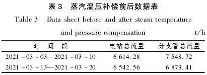 以(yǐ)采取溫(wēn)壓補償(cháng)措施前(qian)後七天(tian),電站總(zǒng)管累計(jì)蒸汽流(liú)量與進(jìn)🈲車間兩(liang)分支管(guan)累計蒸(zhēng)汽流量(liàng)之和數(shu)據進行(hang)對‼️比。期(qī)間孔闆(pǎn)流量計(ji)正常運(yùn)行流量(liàng)連續無(wu)大波動(dong),無停機(jī)、檢修🔞等(deng)事故。高(gāo)壓側蒸(zheng)汽管道(dào)壓⭕力爲(wèi)0.65~0.7MPa,溫度爲(wei)220℃左右。低(di)壓側蒸(zhēng)汽管道(dào)壓力爲(wèi)0.45~0.5MPa,溫度爲(wèi)160℃左右。記(jì)錄數據(jù)如表3所(suǒ)示。