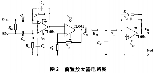 前(qian)置放大器由(you)電荷/電壓轉(zhuan)換器、電壓放(fàng)大器、低通濾(lǜ)波器組成🔴。采(cǎi)用雙端輸人(rén)的電荷/電壓(ya)轉換器,它把(ba)探頭壓電晶(jing)體輸出的交(jiao)變電荷信号(hào)變換成與電(diàn)荷量成正比(bi)的電壓信号(hào)。電壓放大器(qì)則利用同相(xiàng)輸人的放大(dà)器來得到幅(fu)度适當的電(diàn)壓信号。設置(zhi)低通濾波器(qì)的作用是爲(wèi)了消除渦💔街(jiē)信号中夾🚶♀️帶(dai)的複雜噪聲(sheng)。前置放大器(qì)具🏃♀️體實現電(dian)路如圖2所示(shì)。