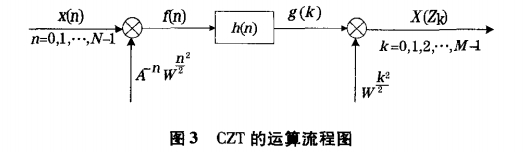 (4)設A0=1,W0=1,00=2πƒ,/Fs,φ0=2π△ƒ"/Fs做CZT;