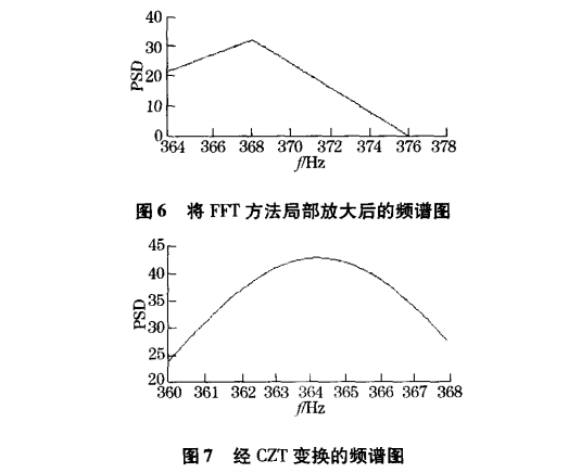 在FFT變(bian)換的基礎上(shàng),先确定頻譜(pǔ)中主瓣的位(wèi)置(仿真實驗(yàn)中取最⭕大值(zhi)和次最大值(zhí)之間作爲局(jú)部放大的主(zhǔ)瓣位置),然✂️後(hòu)在此區間進(jin)行CZT變換,仿真(zhen)結果如圖7所(suo)示: