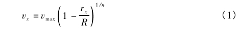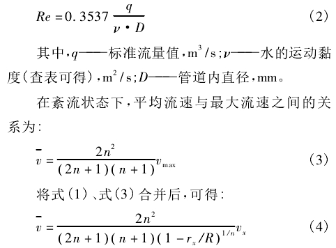 其中,vx一距(jù)離管道中心線rx的(de)流速,m/s;Umax管道中心線(xian)的流速,m/s;r,--流速測點(diǎn)與管道中心線的(de)距離,m;R一管道内半(bàn)徑,m;n一随雷諾數不(bu)同而❤️變化的指數(shu)。