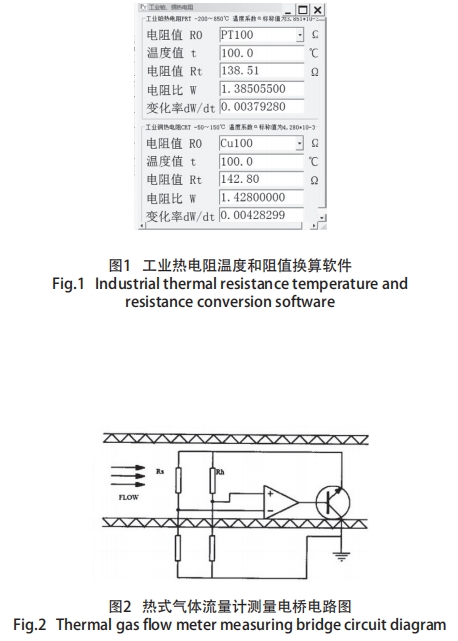 熱式氣(qi)體質量流量計(jì)采用電橋平衡(héng)電路對測溫❤️和(hé)測速兩個🐆傳感(gǎn)器進行激勵,以(yi)Pt20和Pt1000的組合爲例(li),電橋左邊回🔞路(lù)R1+Pt20,電橋右邊回路(lù)R2+Pt1000;電阻R1的阻值爲(wei)4.9Ω,電阻R2的阻值爲(wèi)270.5Ω,測量Pt1000的阻值就(jiu)可以計算出測(cè)溫傳感器的💋溫(wēn)度值。由于通過(guò)49Ω采🚩樣電阻和Pt1000的(de)電流相♉同,分别(bié)對兩個電阻的(de)電壓進行采集(ji),通過比率就可(ke)以計算🎯出當前(qián)Pt1000的電阻值,進而(ér)計算出測溫傳(chuán)感器的溫度值(zhi)。由于采❗樣電阻(zǔ)49Ω對測量的準确(que)度影響很大,需(xu)要電阻具備低(di)溫漂和高精度(du)的特性,在🙇🏻使用(yong)的過程中通常(chang)需❓要對采樣電(diàn)✌️阻進行标定,通(tōng)常是應用标準(zhǔn)電阻箱接人Pt1000的(de)位置,計算出采(cai)樣電阻✌️的準确(que)電🔴阻值與49Ω進行(hang)比較,後續将💃🏻此(ci)⭐修正系數帶人(ren)計.算過程。對熱(rè)式橋電路進行(háng)仿真過程如下(xia):假設管道内空(kōng)氣介質☎️的溫度(dù)爲20℃,則測溫傳感(gǎn)器Pt1000的電阻值爲(wei)1077.935Ω。基❄️于上述電橋(qiao)特性,測速傳感(gan)器Pt20需達到63.67℃(産生(shēng)43.67℃溫差)才能至電(dian)橋平衡,停止對(duì)測速傳💰感器進(jìn)行加熱。