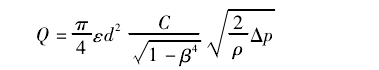 式中(zhōng):ε爲可膨脹性(xìng)系數;d爲開孔(kǒng)直徑,mm;C爲流出(chu)系數;β爲直徑(jìng)🔆比🚶(開孔直徑(jing)/上遊管道内(nèi)徑);ρ爲介質密(mì)度.kg/m3;△p爲壓👉力差(cha),Pa。